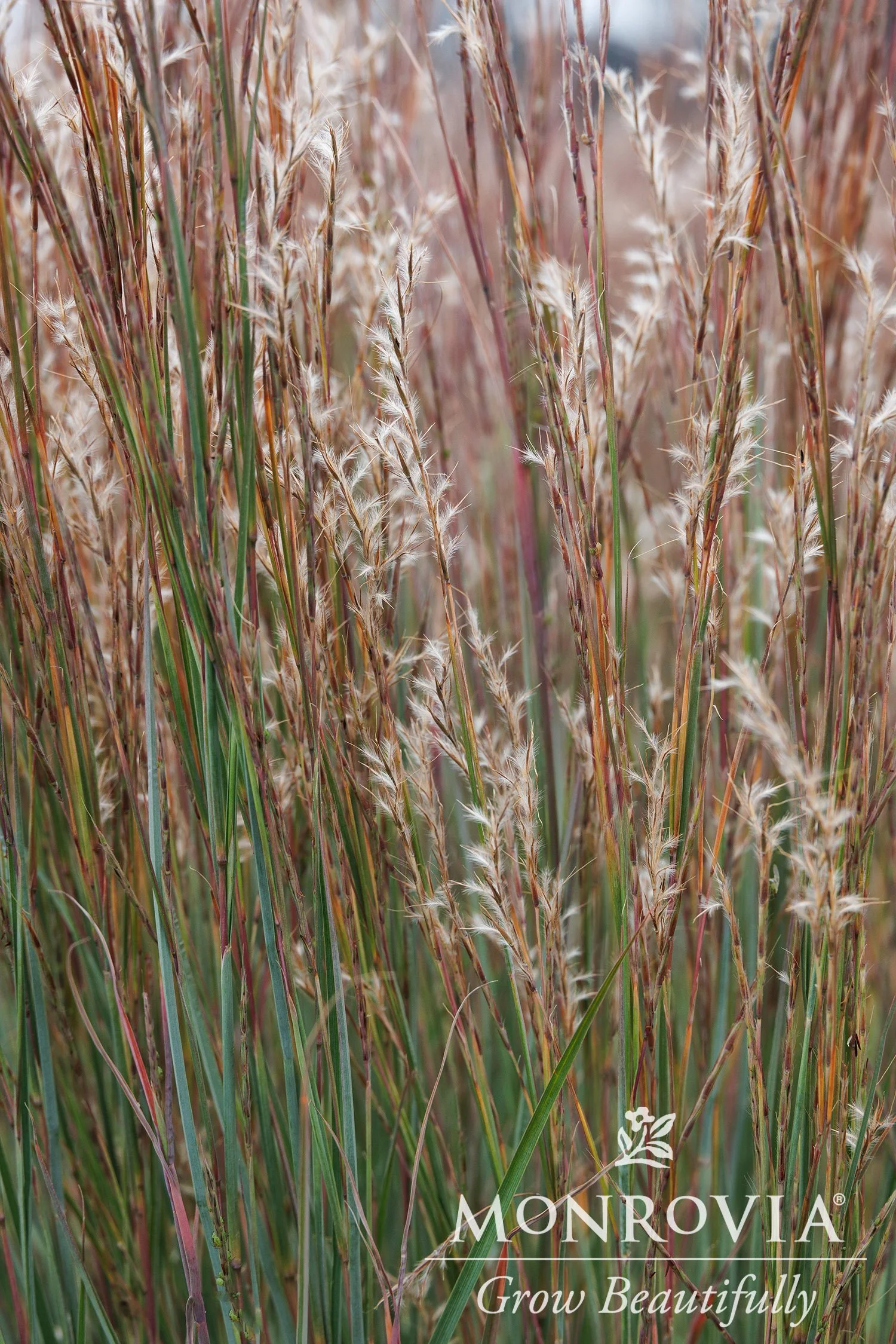 A shorter variety that will not flop over. Blue foliage takes on a purple hue in fall. Purplish-bronze flowers turn to fluffy white seed heads that may persist into winter. A highly adaptable plant that can take various types of soil, including clay with occasional water inundation. Good drought tolerance once established and tolerates high heat and humidity.